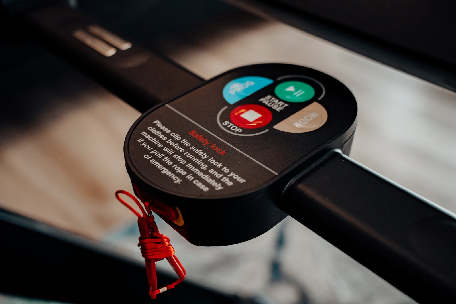 Sæt den røde sikkerhedsnøgle fast på dit tøj før hver træning. I nødstilfælde kobler sikkerhedsnøglen fra og stopper løbebåndet med det samme. Din sikkerhed er altafgørende for os.