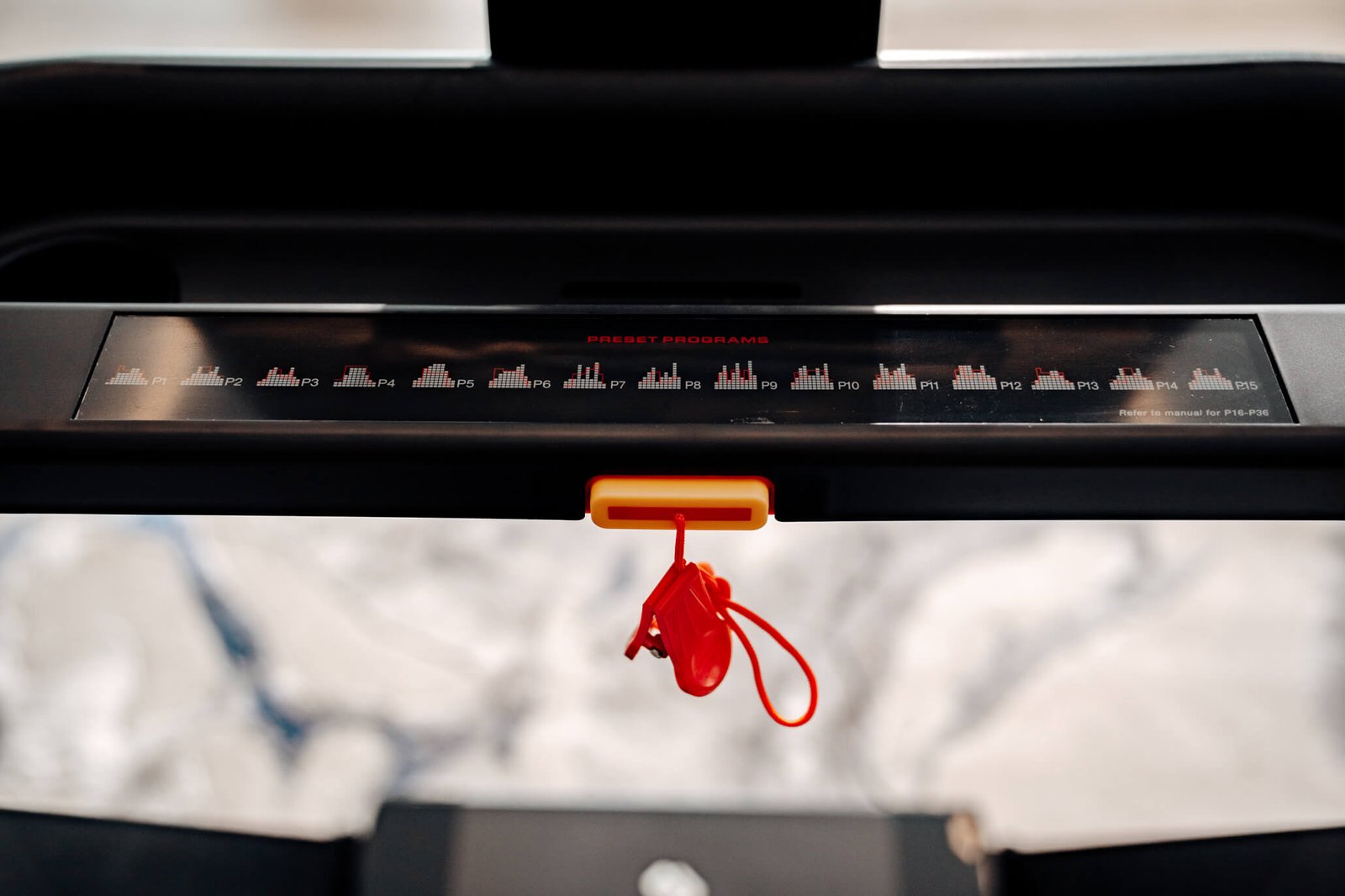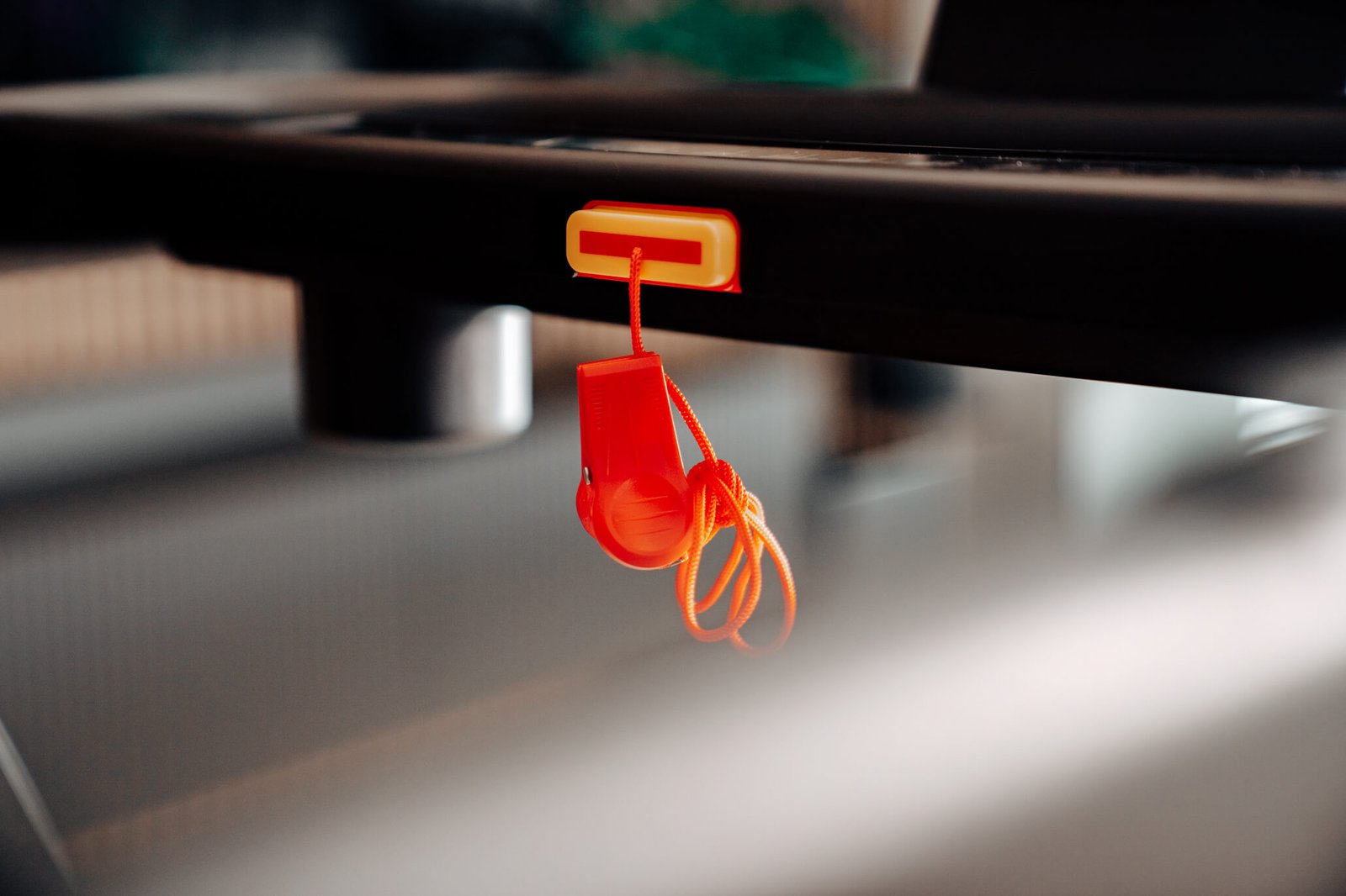 Sæt den røde sikkerhedsnøgle fast på dit tøj før hver træning. I nødstilfælde kobler sikkerhedsnøglen fra og stopper løbebåndet med det samme. Din sikkerhed er altafgørende for os.