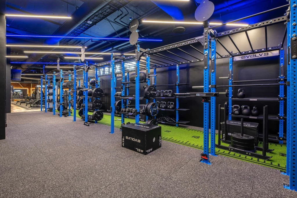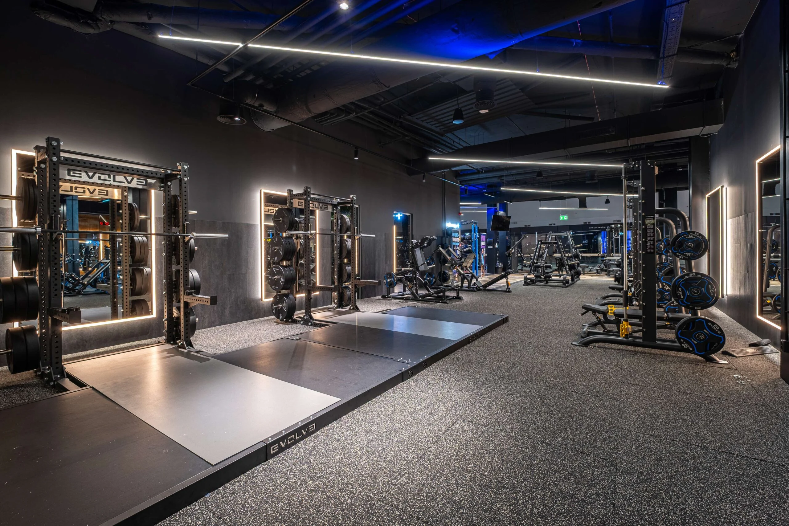 Questa palestra è dotata di quasi tutte le attrezzature da palestra EVOLVE, tra cui le nostre macchine Premium con carico a piastra, oltre a pesi liberi personalizzati di altissimo livello. La palestra+ dispone anche di piastre calibrate Evolve Powerlifting da 0,25 kg a 25 kg e in questo progetto abbiamo fornito le nostre panche della serie Prime.