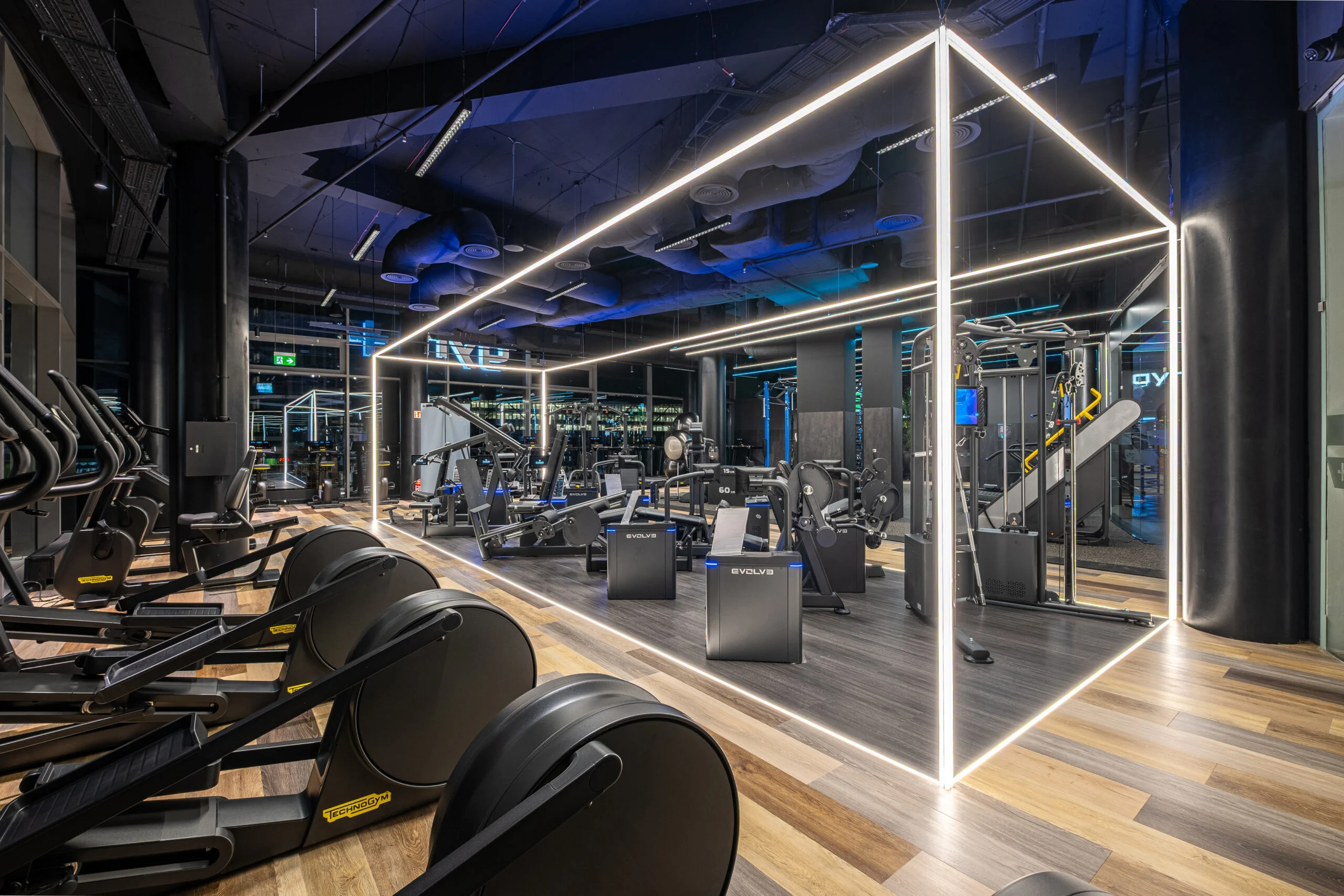 Questo progetto è stato completato presso la Gym+ Vilnius, Europa, che presenta una selezione completa di attrezzature progettate per supportare l’allenamento di tutto il corpo. L’allestimento comprende le innovative attrezzature digitali Evolve.
