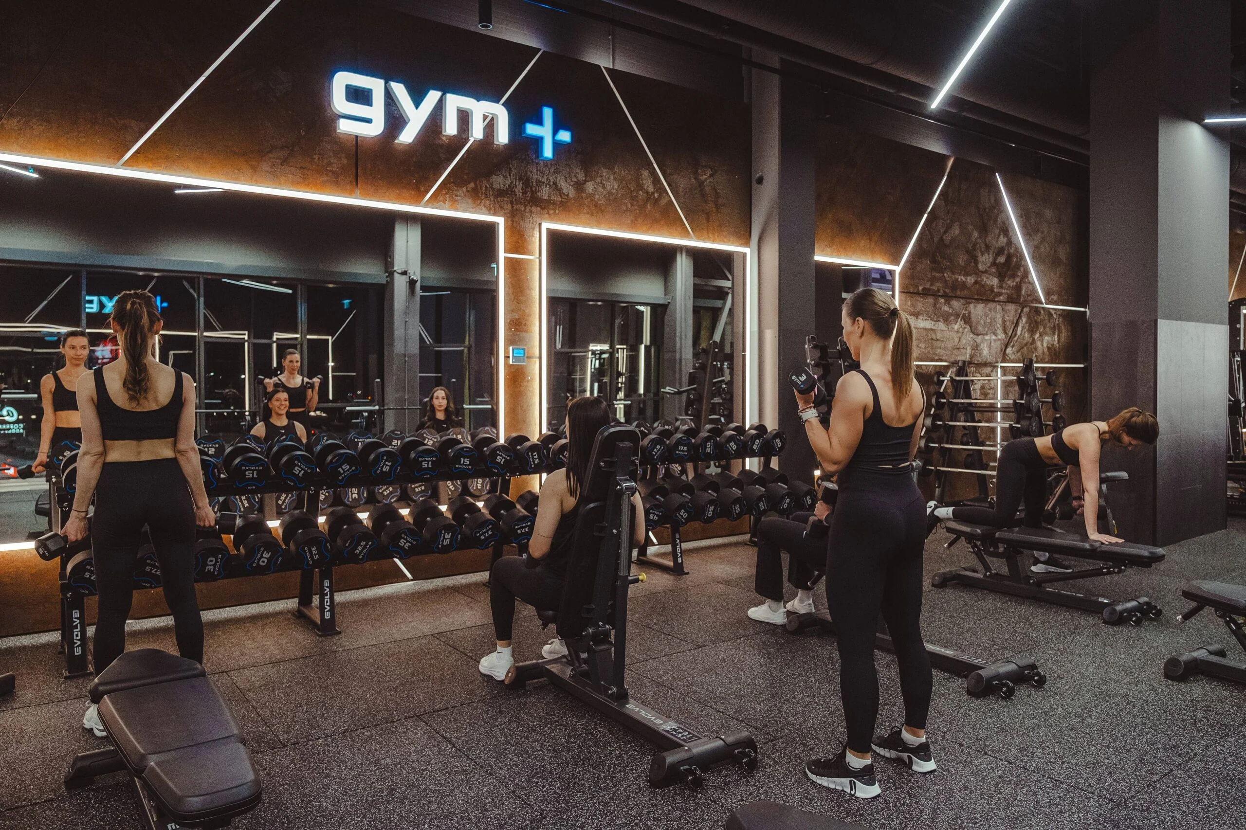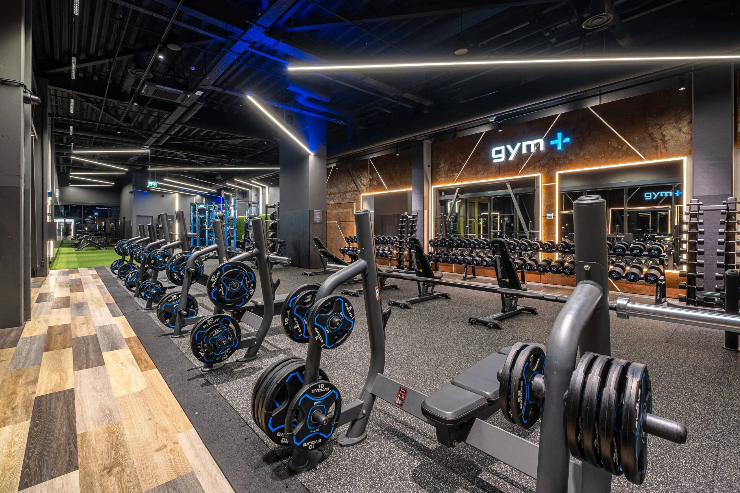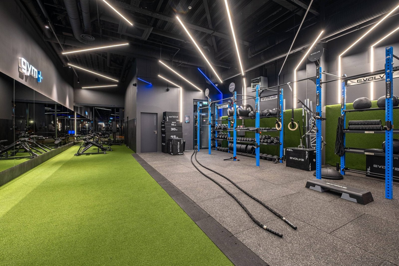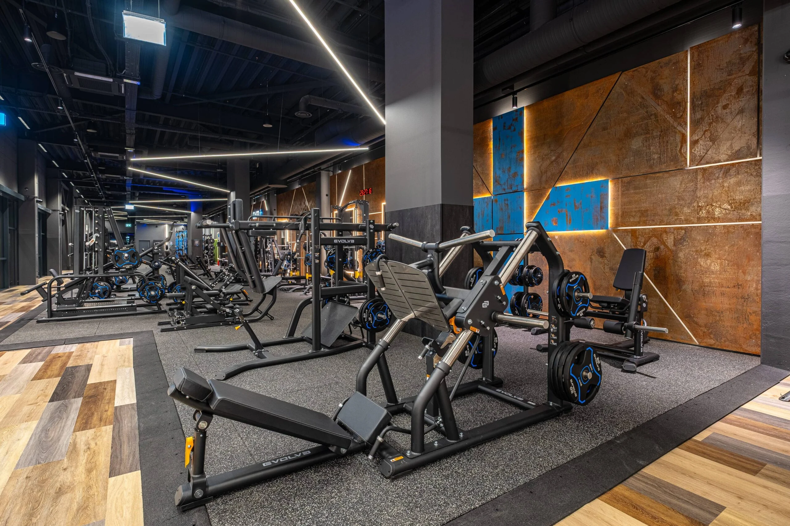 Questo progetto è stato completato presso la Gym+ Vilnius, HUB, che presenta una selezione completa di attrezzature progettate per supportare l’allenamento di tutto il corpo. L’allestimento comprende le innovative attrezzature digitali Evolve.
