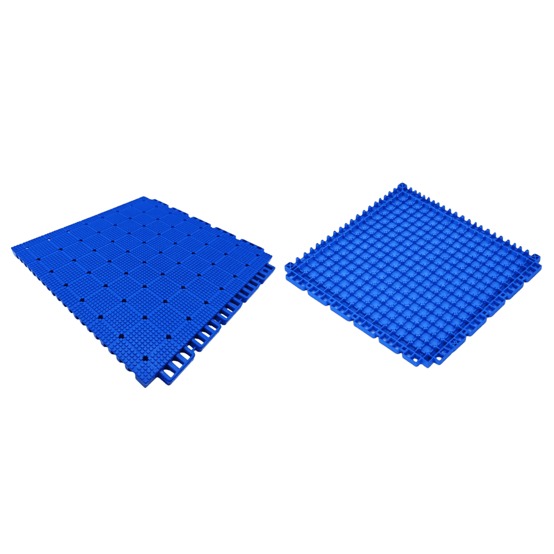 Evolve thermoplastic sports flooring is easy to maintain and simple to clean thanks to its water-permeable surface, which allows for effortless sweeping or washing. The flooring features a free-floating installation system, so no adhesives or fixing materials are required during assembly. It can also be personalized with various court lines, color combinations, logos, and graphic elements. The minimum order quantity is 1 box (8.93 m²), and the weight of 1 box is 36 kg. This flooring is an excellent choice for those looking for a durable and practical sports surface, offering outstanding shock absorption properties and making it ideal for both professional and amateur sports courts, while requiring only minimal maintenance costs.