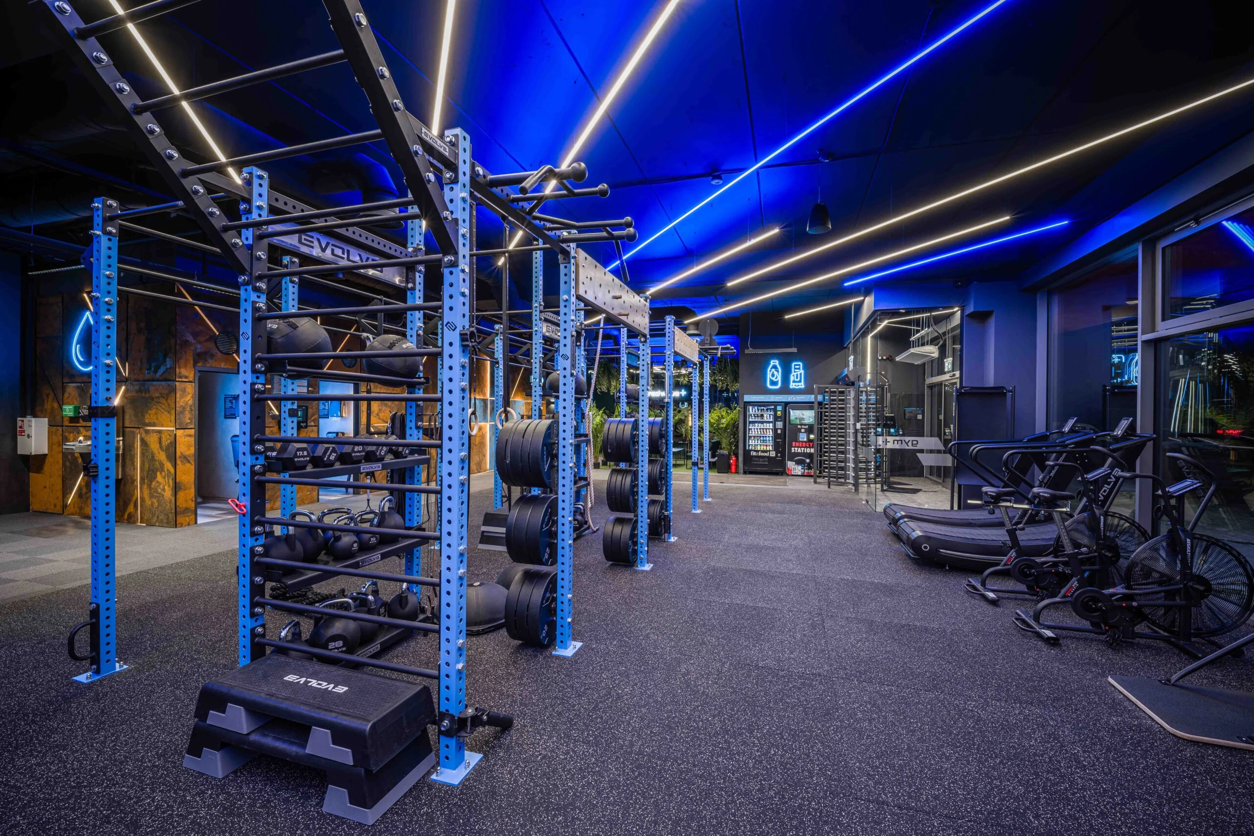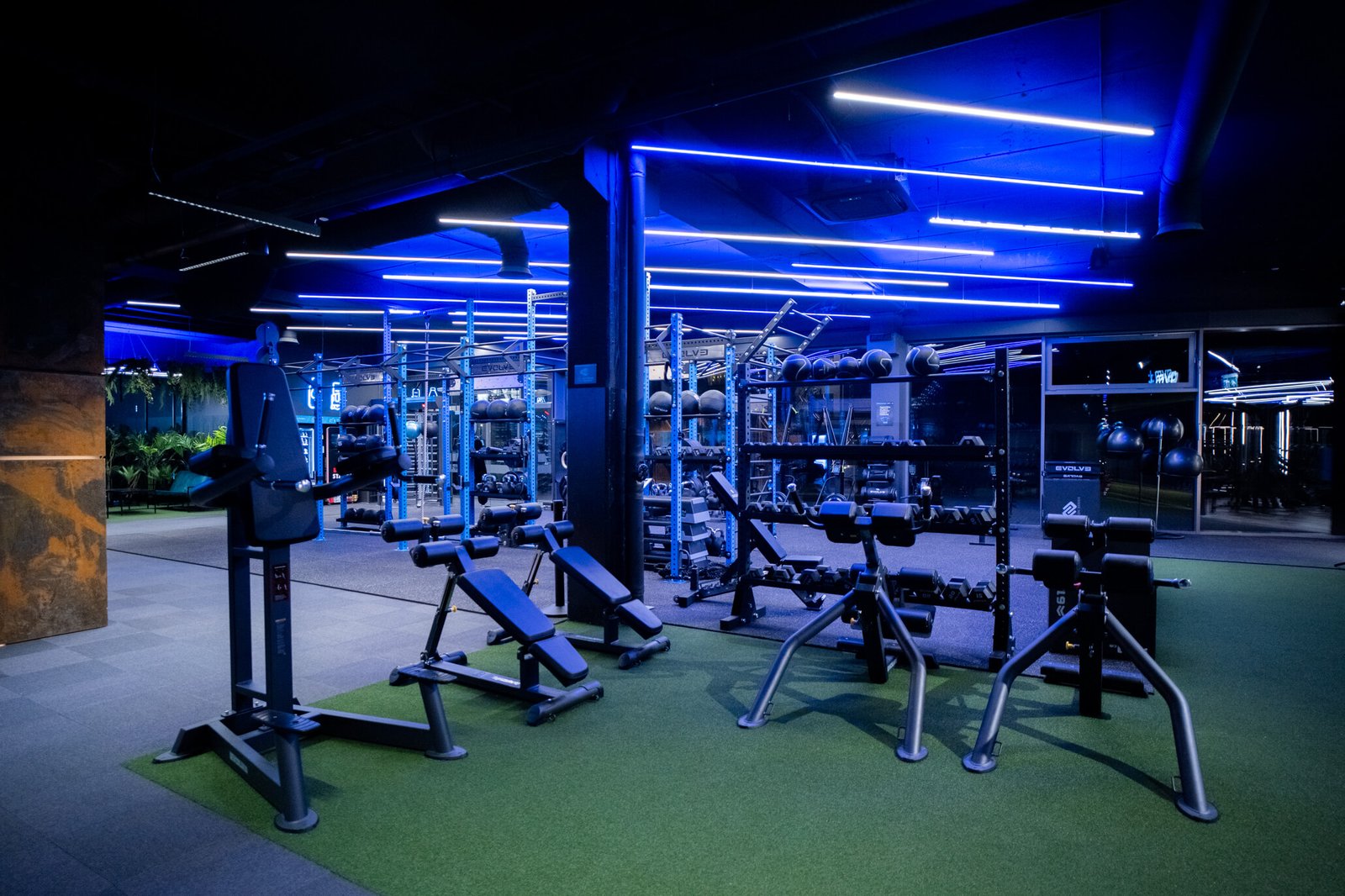 This gym is equipped with almost all EVOLVE gym equipment with our premium plate loaded machine in addition to our top-of-the-line customized Free weights Archives – Evolve also this Gym+ have Evolve Powerlifting Calibrated Weight Plate 0,25kg – 25kg we have also provided in this project our Prime Series benches.