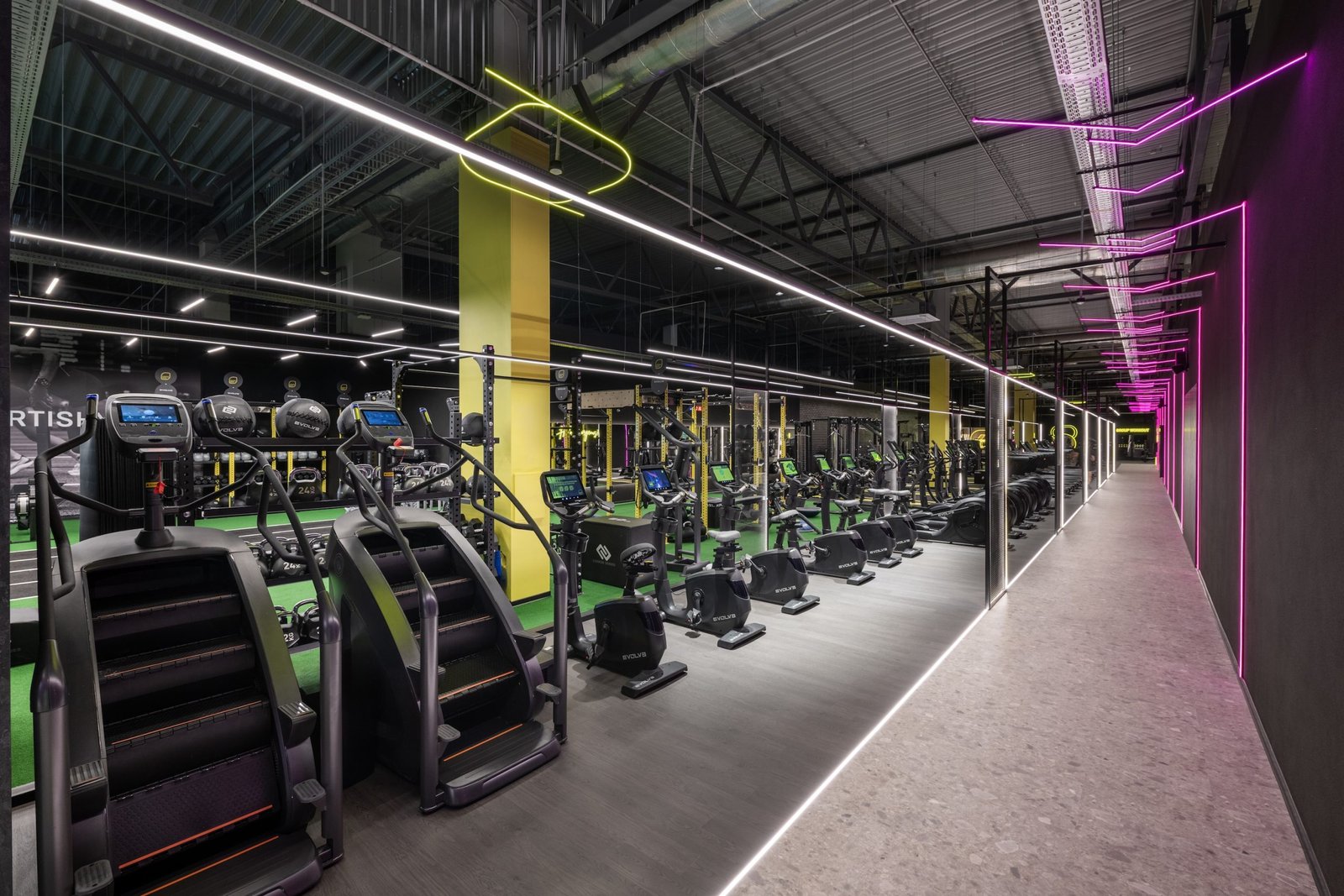 Evolve Fitness is proud to showcase our latest project at Lemon Gym in Vilnius, Lithuania. From the Evolve Ultra Series Cardio with advertising platformand 21.5 inch screen size, when maschine is not in use and goes to “sleep mode” you can stream any advertising media and virtual running footage filmed by us, Evolve StepMill to Evolve cross and functional almost all equipment.